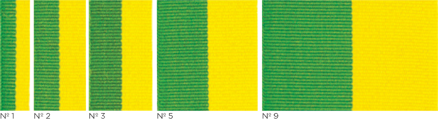Nº 1, Nº 2, Nº 3 e Nº 5 disponíveis em jogos de 5 unidades por cor em peças com 10 metros.