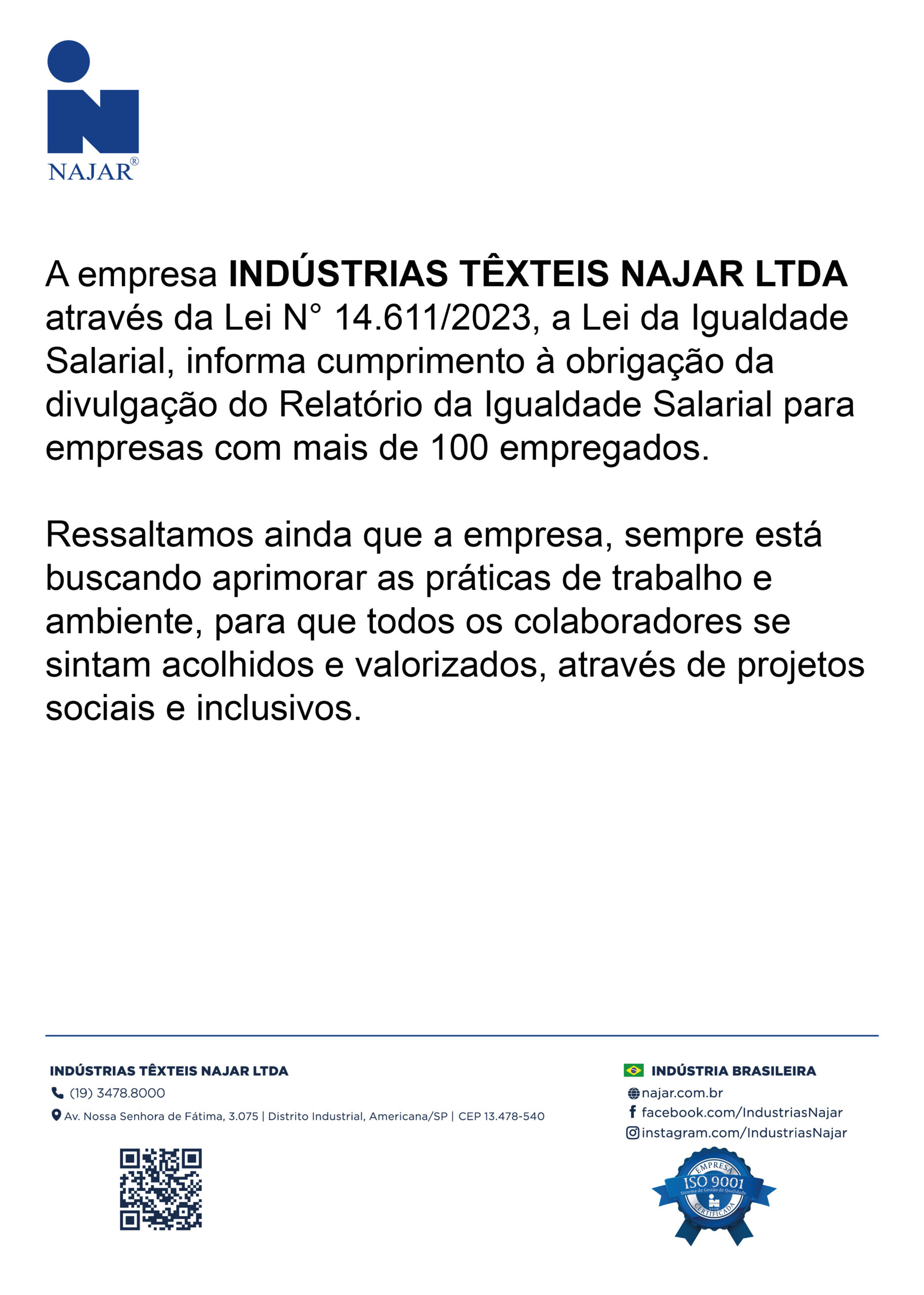 Notas Explicativas ao Relatório de Transparência - Indústrias Têxteis Najar